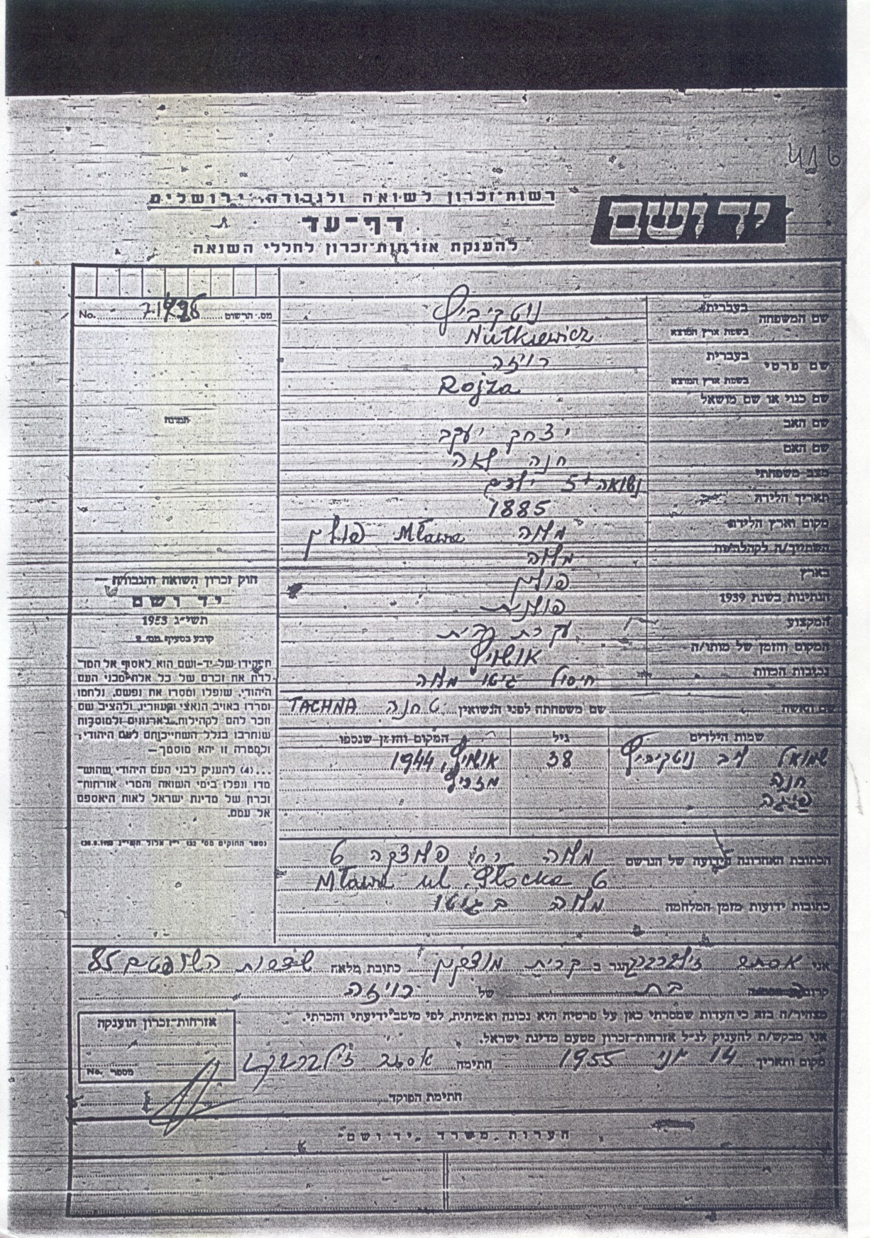 (place and country): Mlawa, Ghetto |