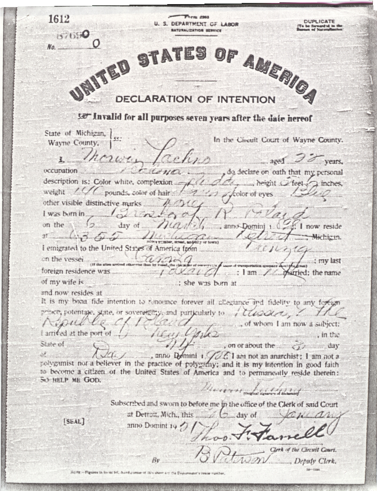 Declaration of Intention