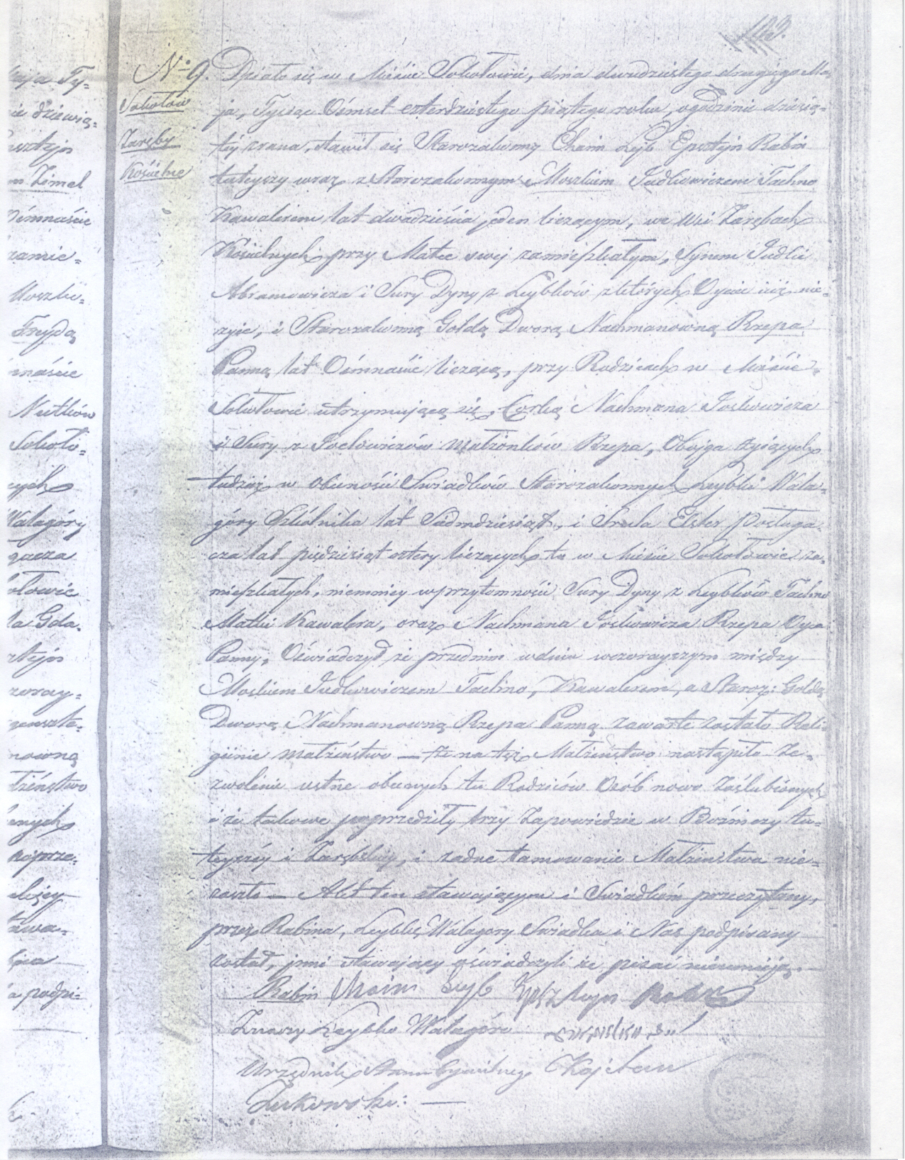 religious wedding between Moszko Judkowicz Tachno, bachelor, and the