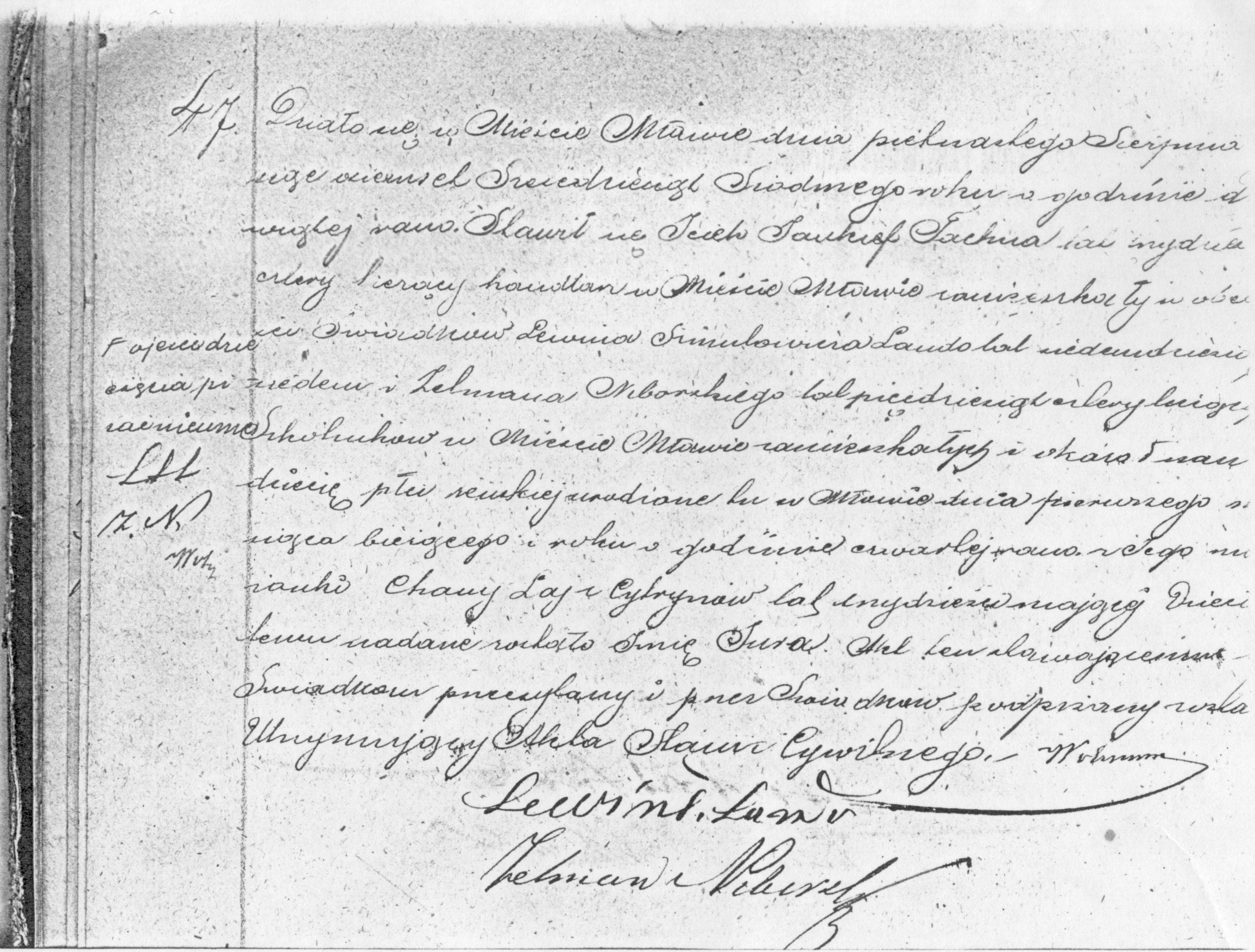 Mlawa, appeared in the presence of the witnesses Lewin Szmulowicz Lando,
