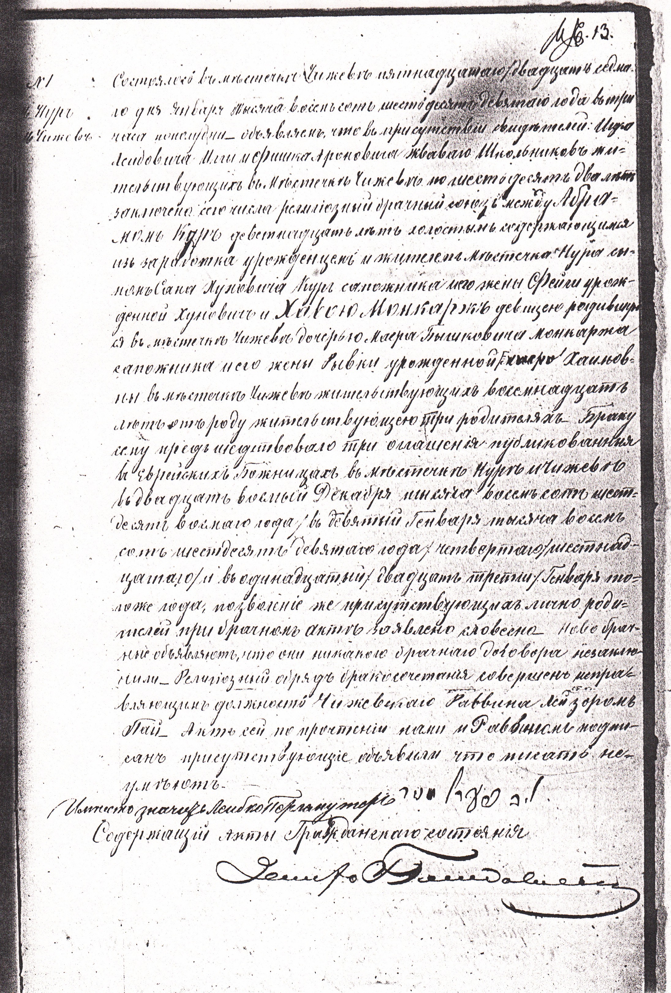 married Chawa Monkarz, bachelorette, born in Czyżew, daughter of Majer