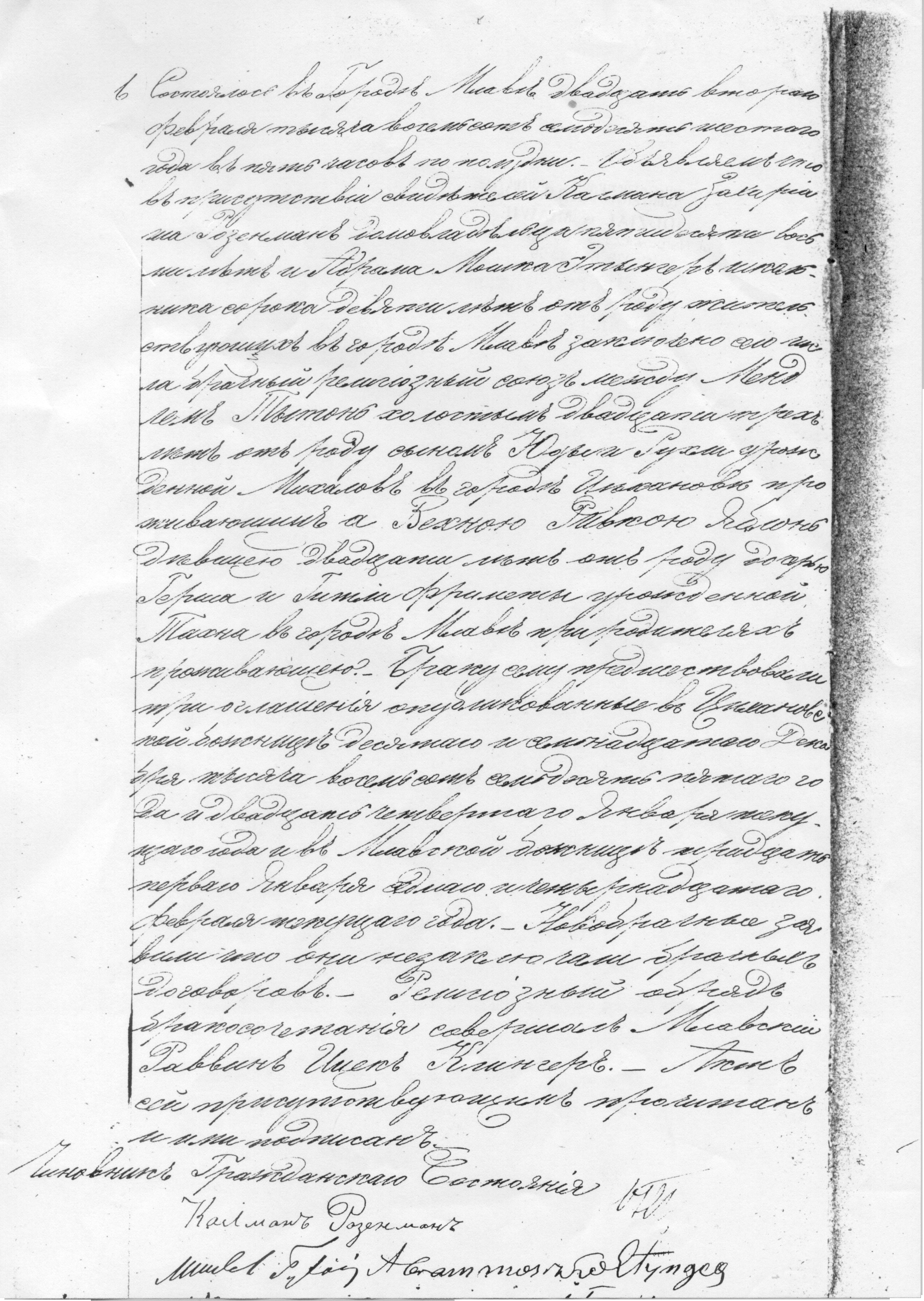 by the Rabbi of Mlawa, Icek Klinger. This document was read to those who
