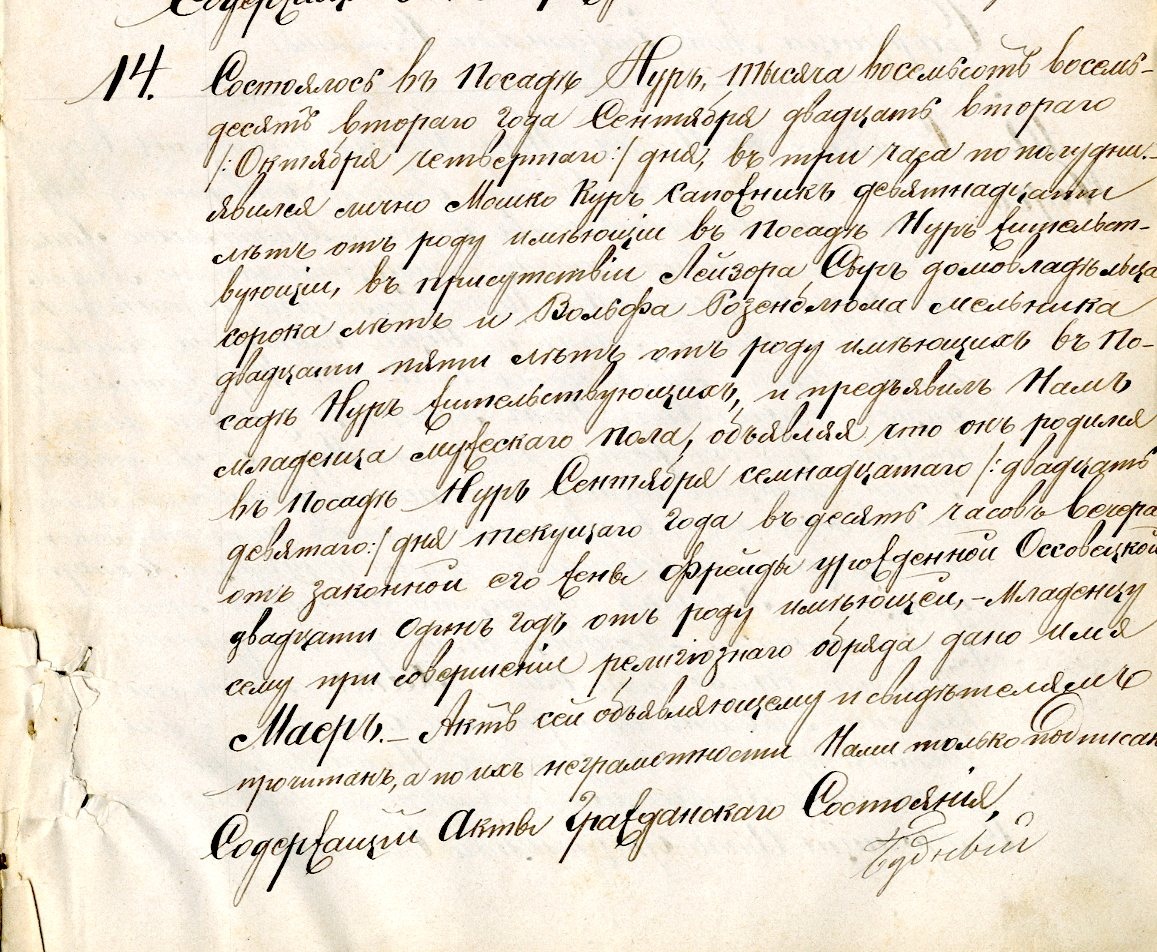 Moszko Kur, a shoemaker, age nineteen years old, residing in Nur, have