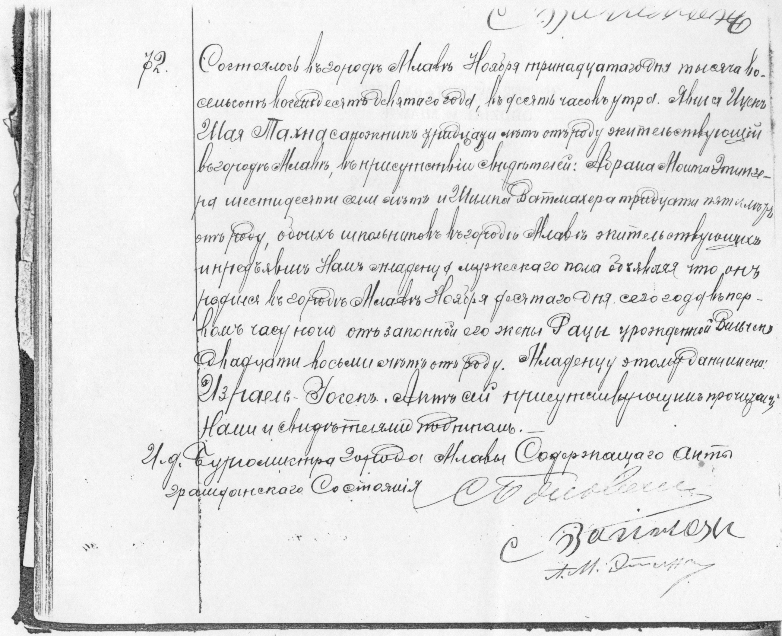 the town of Mlawa, appeared in the presence of the witnesses Abram