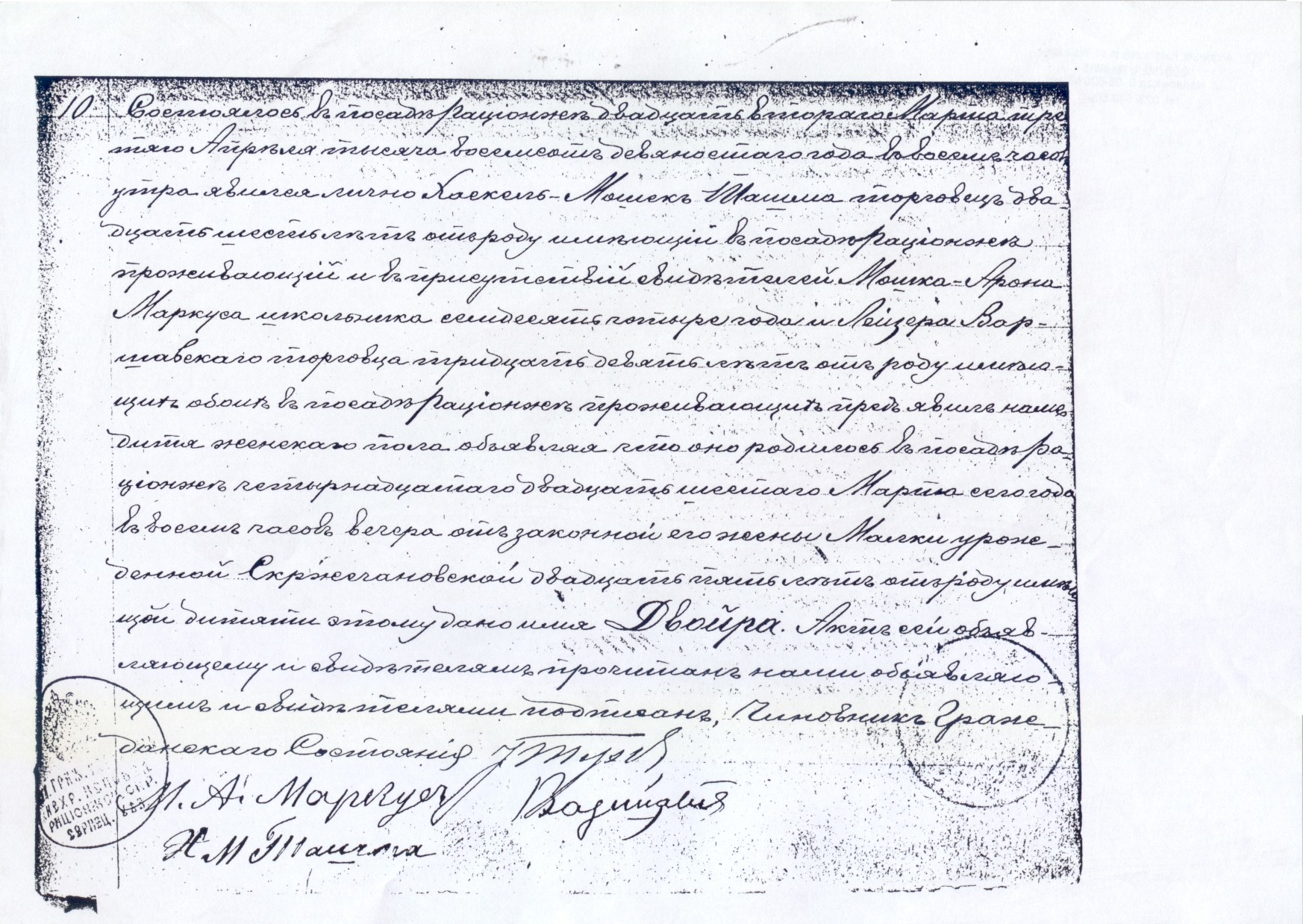 Taszma, trader, twenty six years old, residing in the settlement of