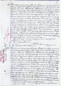 It happened in the town of Mlawa on the fifth day of March in the year eighteen hundred and ninety eight at ten o’clock in the morning. Szymsie [Shimon Alter son of Yitzhak Yakov Ha-Levy] Tachna, age thirty seven, tanner, residing in the town of Mlawa, appeared in the presence of the witnesses Abram Moszek Etingier, age seventy six, and Symche Watmacher, age forty three, both of whom synagogue sextons residing in the town of Mlawa, and showed us a child of the male gender, declaring that it was born in the town of Mlawa on the twenty sixth of February of the current year at five o’clock in the afternoon to his wedded wife Zysa [Tzippora daughter of Mikhael Ha-Cohen] née Kon, age thirty seven.  The child was given the names Abram Moszek [Avram Moshe son of Shimon Alter Ha-Levy].  This document was read to the testifier and the witnesses, then signed by us, them and the father of the child.