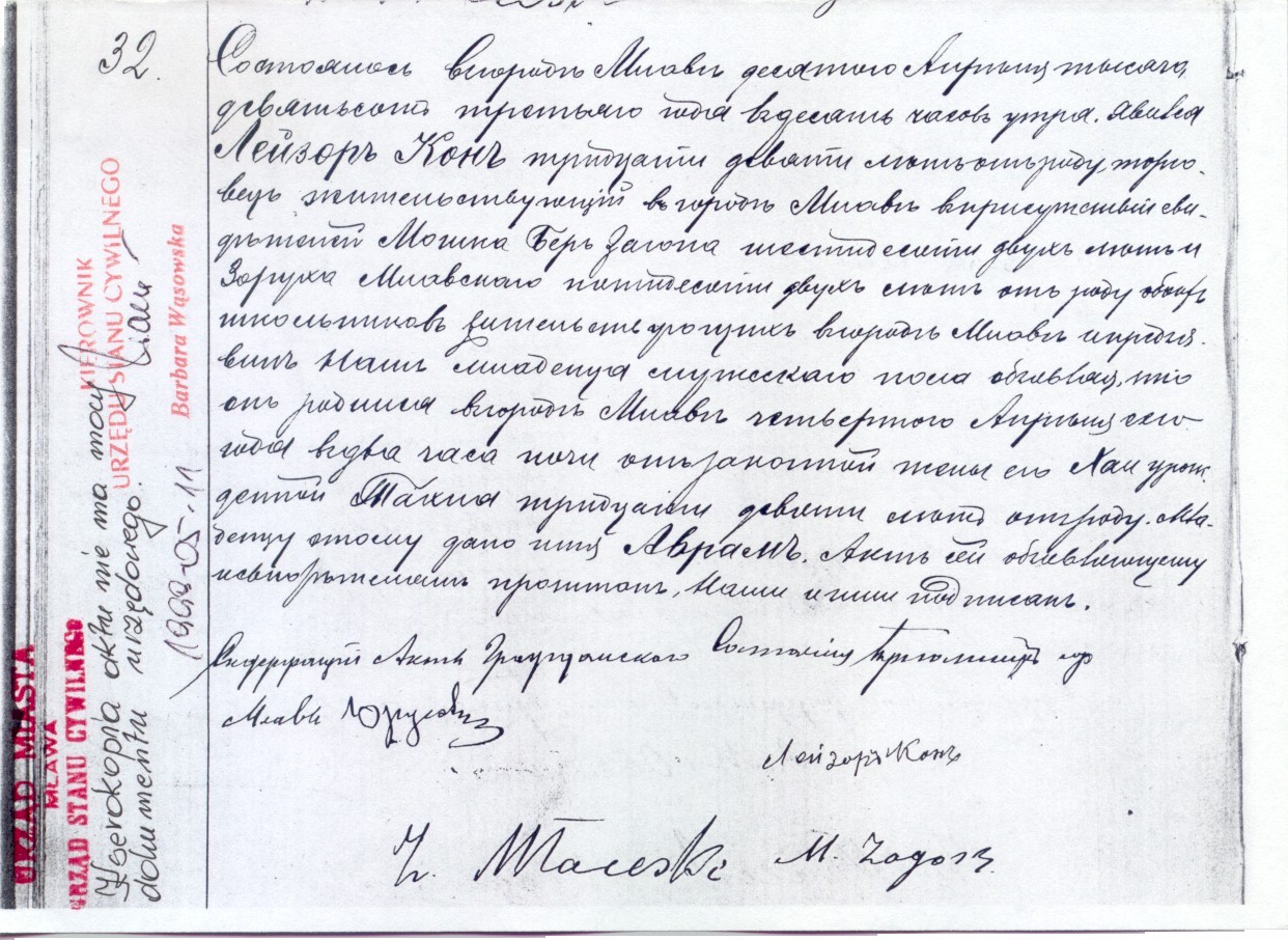 The Mayor of Mlawa, Holder of the Civil Registry records. |