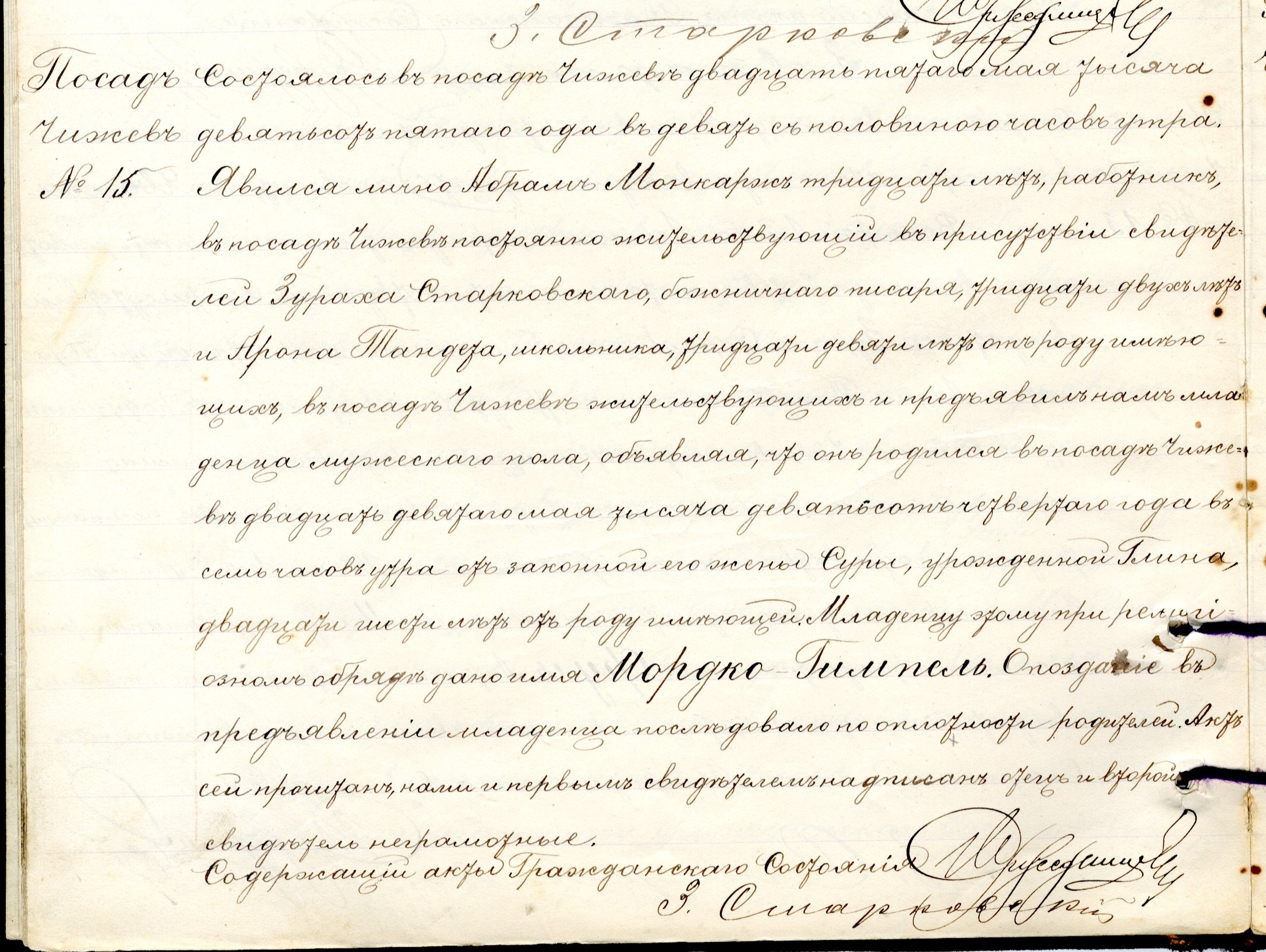 religious ceremony the baby was named Mordko Gimpel.