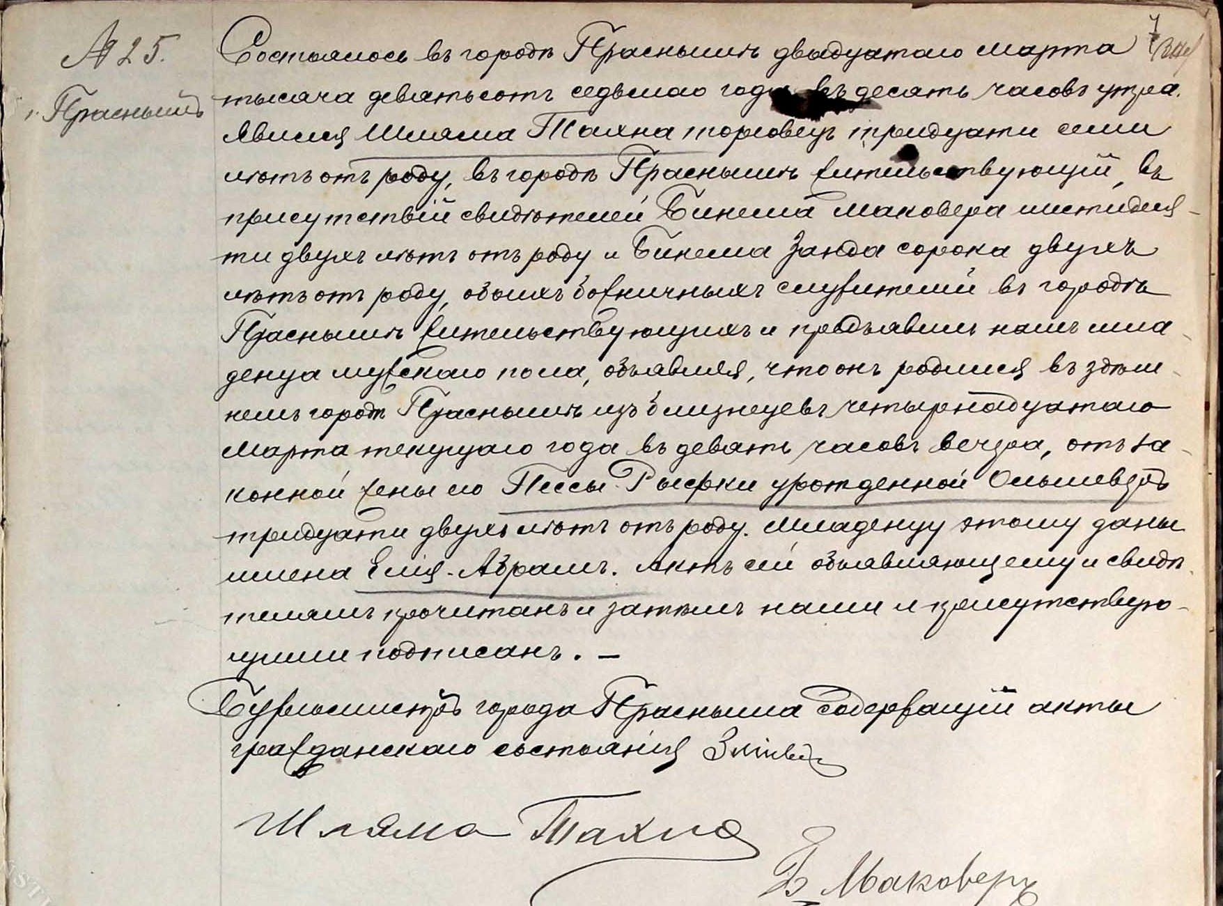 child was named Elia Abram. This document was read to the testifiers and signed by