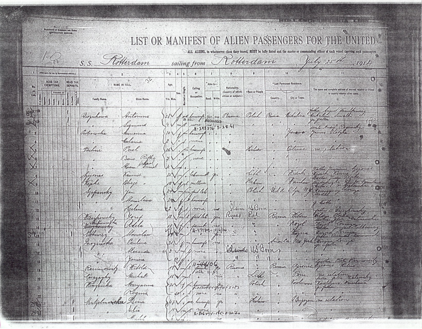 LIST OR MANIFEST OF ALIEN PASSENGERS FOR THE UNITED