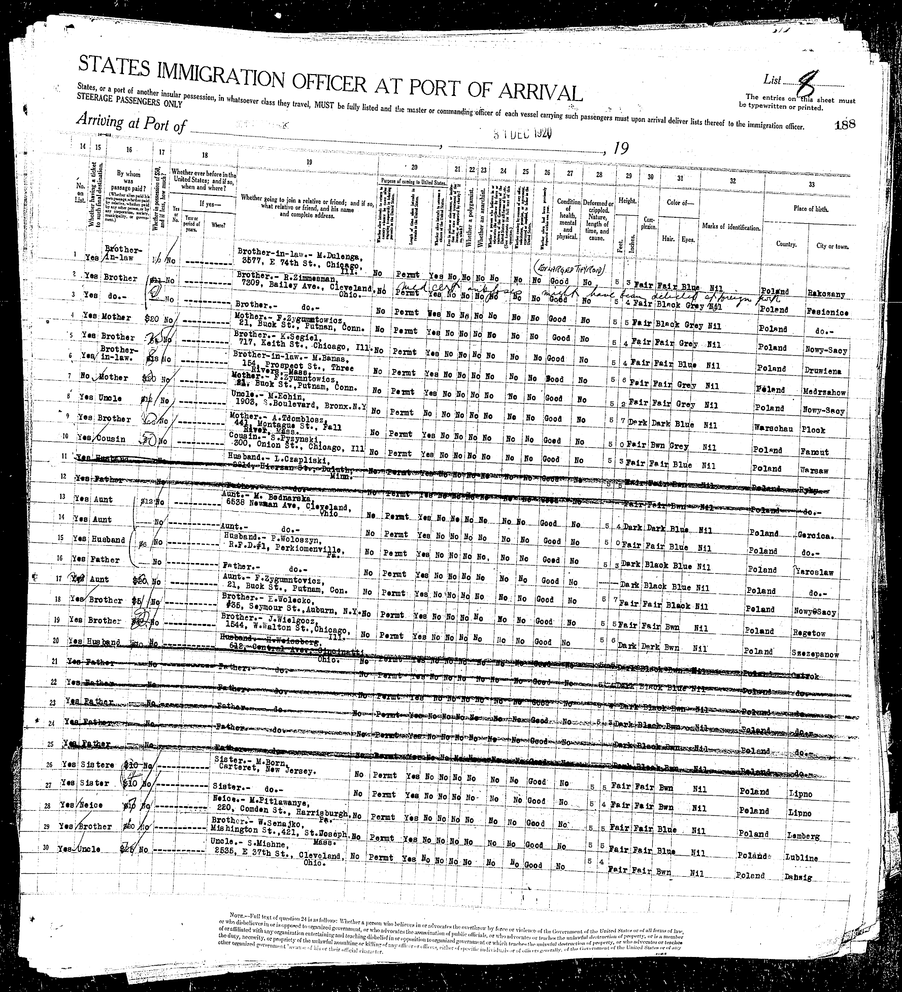 Arriving at Port of New York, December 31, 1920 |