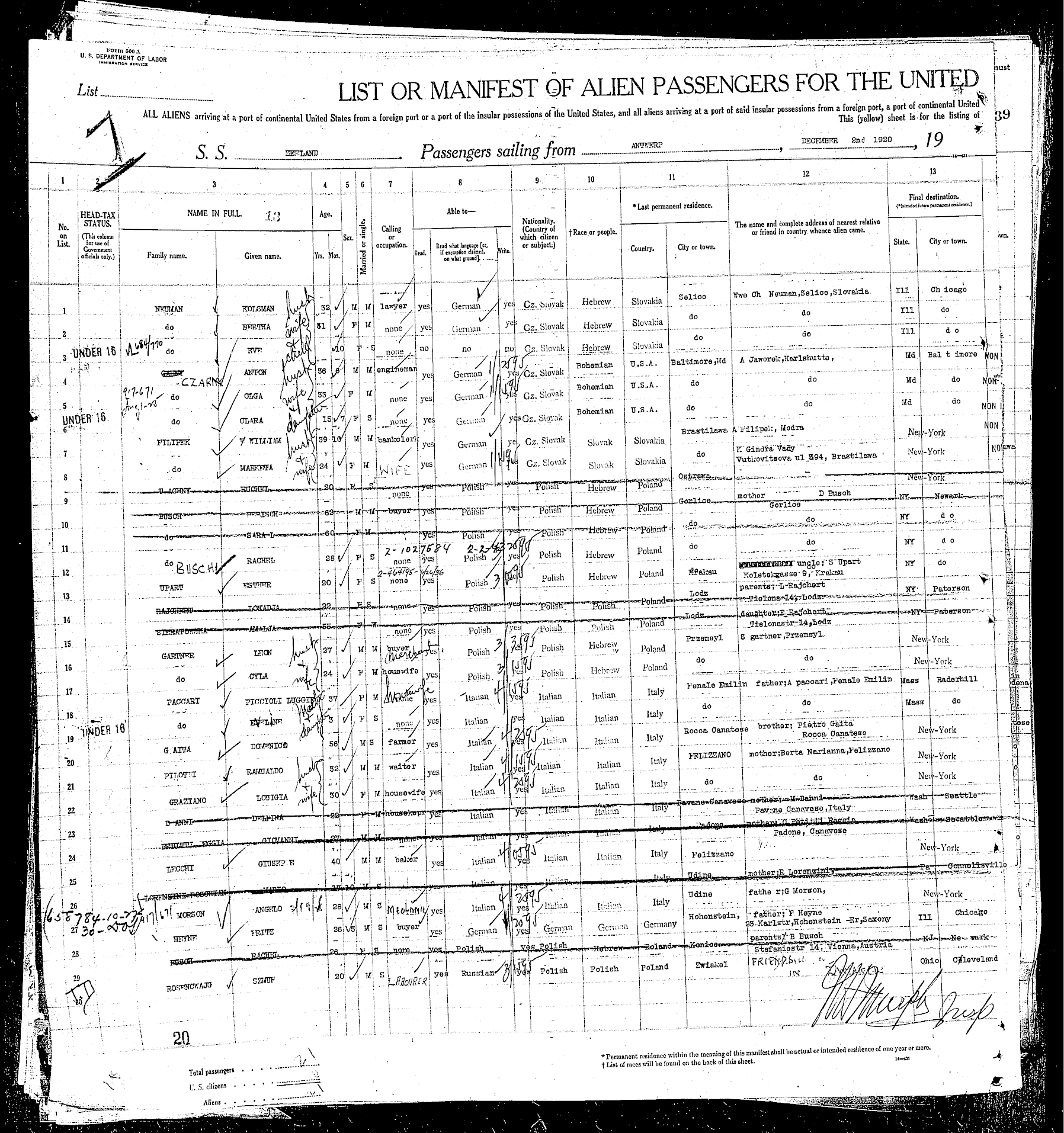 Arriving at Port of New York, December 13, 1920 |