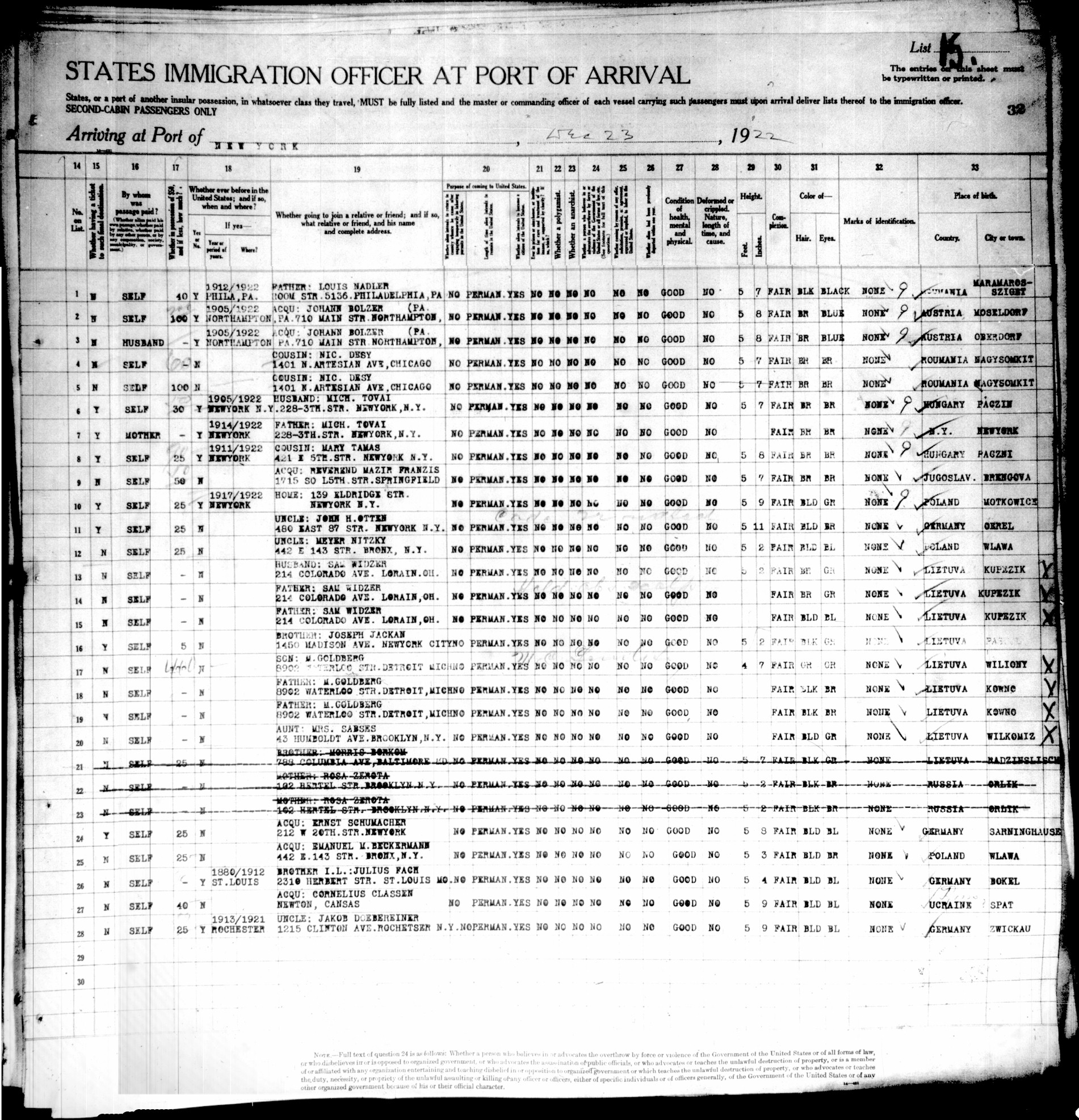 LIST OR MANIFEST OF ALIEN PASSENGERS FOR THE UNITED